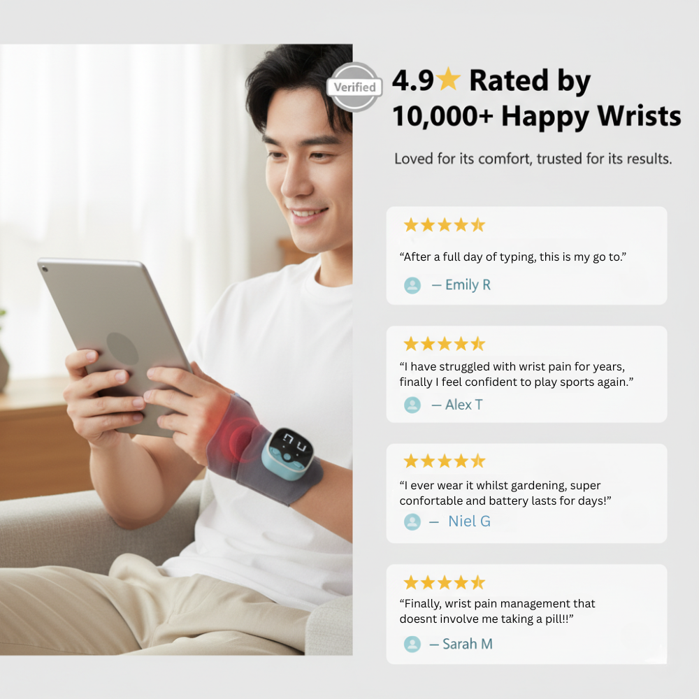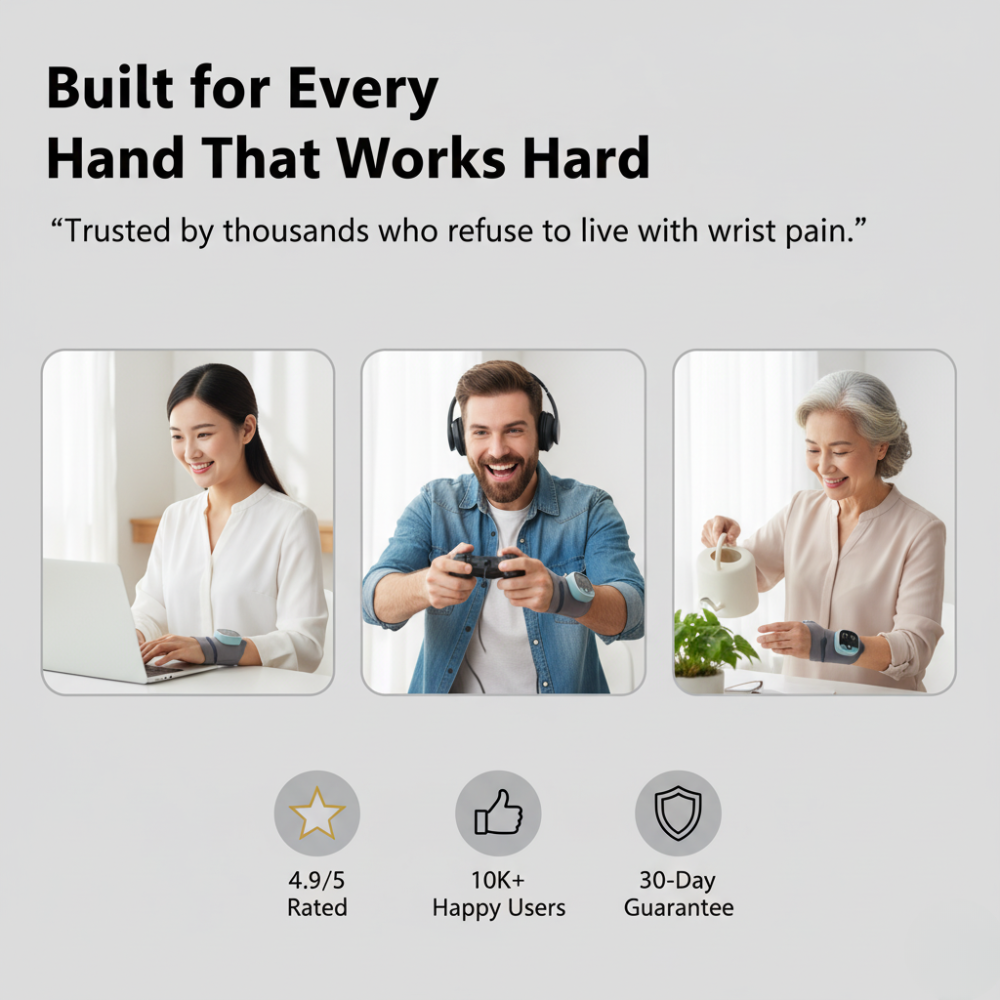 VibraRelief combines targeted heat therapy and precision vibration to keep your hand steady and your focus unbroken — whether you’re typing, playing, or working.